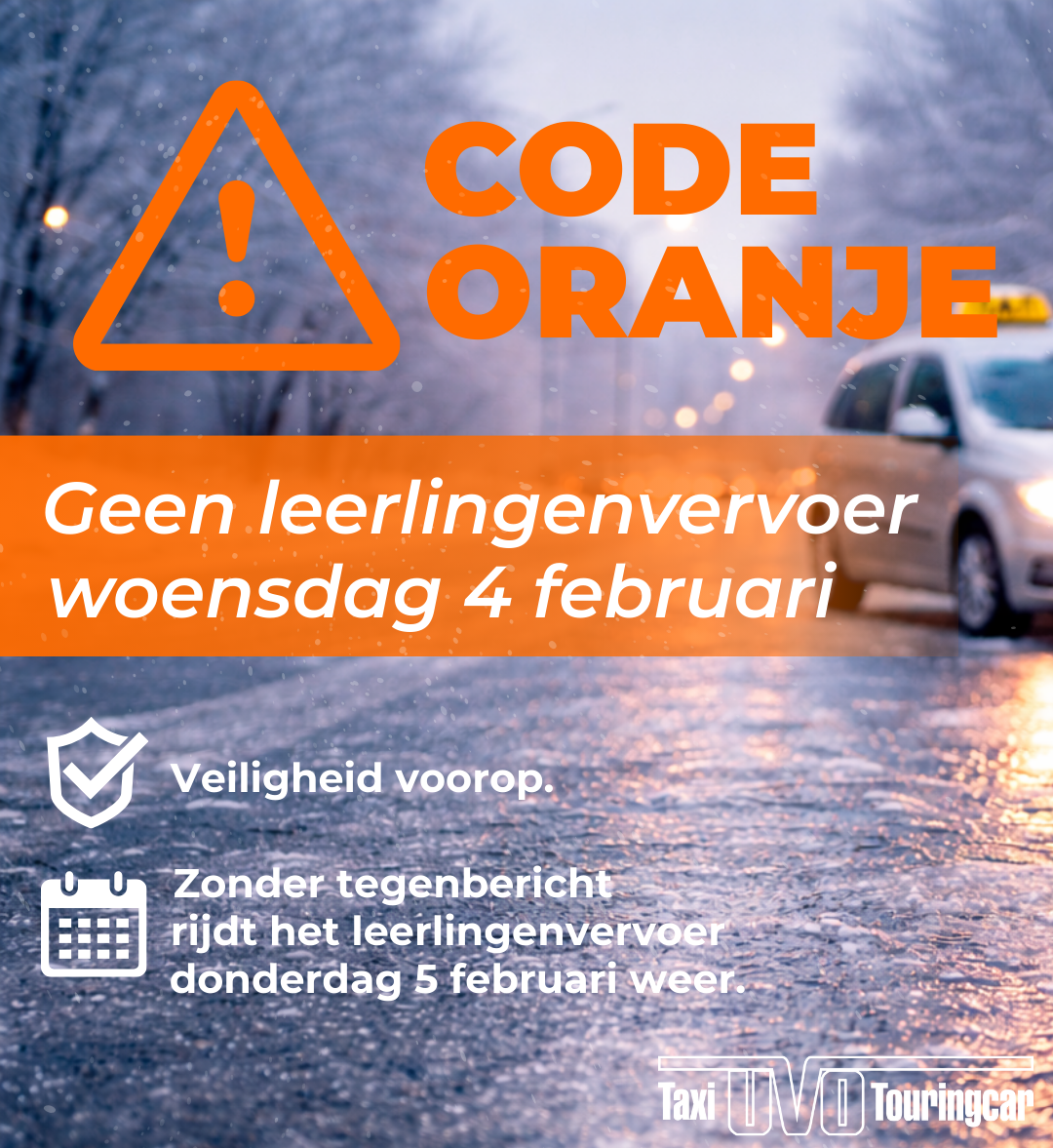 Het leerlingenvervoer rijdt woensdag 4 februari niet. Zonder tegenbericht start het leerlingenvervoer weer op donderdag 5 februari.