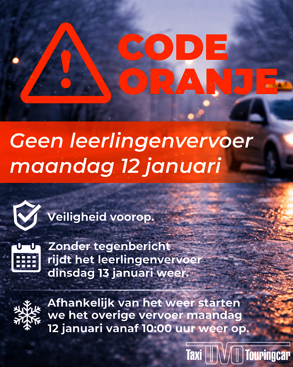 Belangrijke update! Vanwege de aanhoudende weersverwachting en met het oog op de veiligheid van onze reizigers en chauffeurs delen wij deze update. Het leerlingenvervoer rijdt donderdag 8 en vrijdag 9 januari niet. Voor het overige vervoer adviseren wij om niet-noodzakelijke ritten uit te stellen. Zonder tegenbericht gaat het leerlingenvervoer weer door op maandag 12 januari.... Lees verder »»